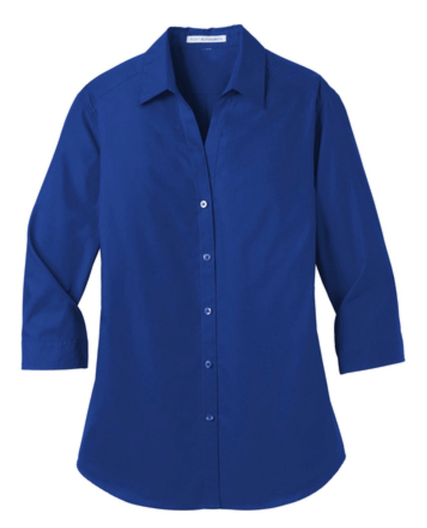 đź‘•Ladies - Embroidered - Carefree Poplin 3/4 Sleeve Dress Shirt - Royal