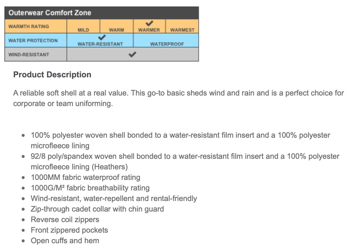*100% polyester woven shell bonded to a water-resistant film insert