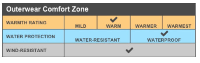 100% polyester shell bonded to a waterproof laminate film with DWR finish