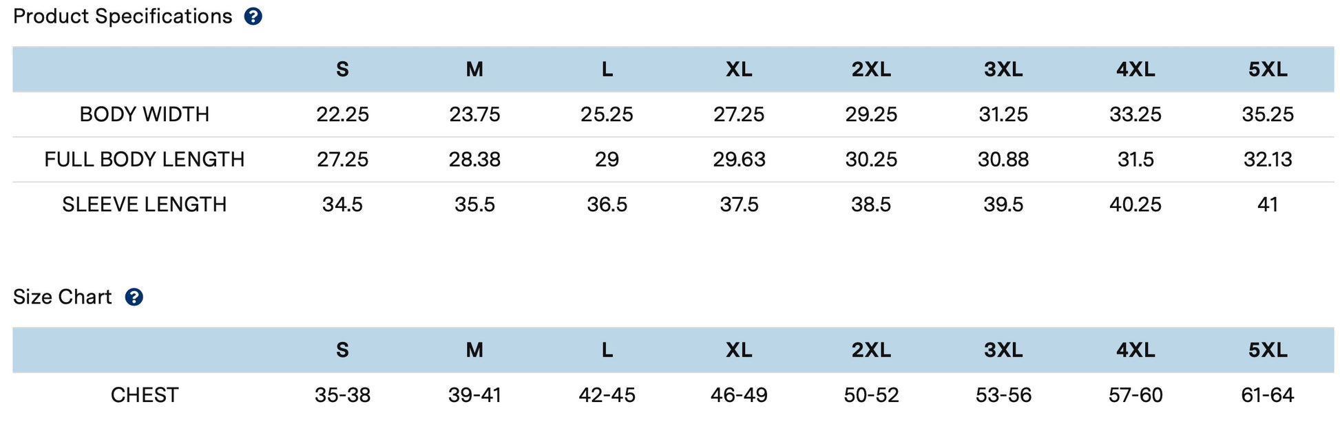 * Sizes:Ā S, M, L, XL, 2XL, 3XL, 4XL, 5XL